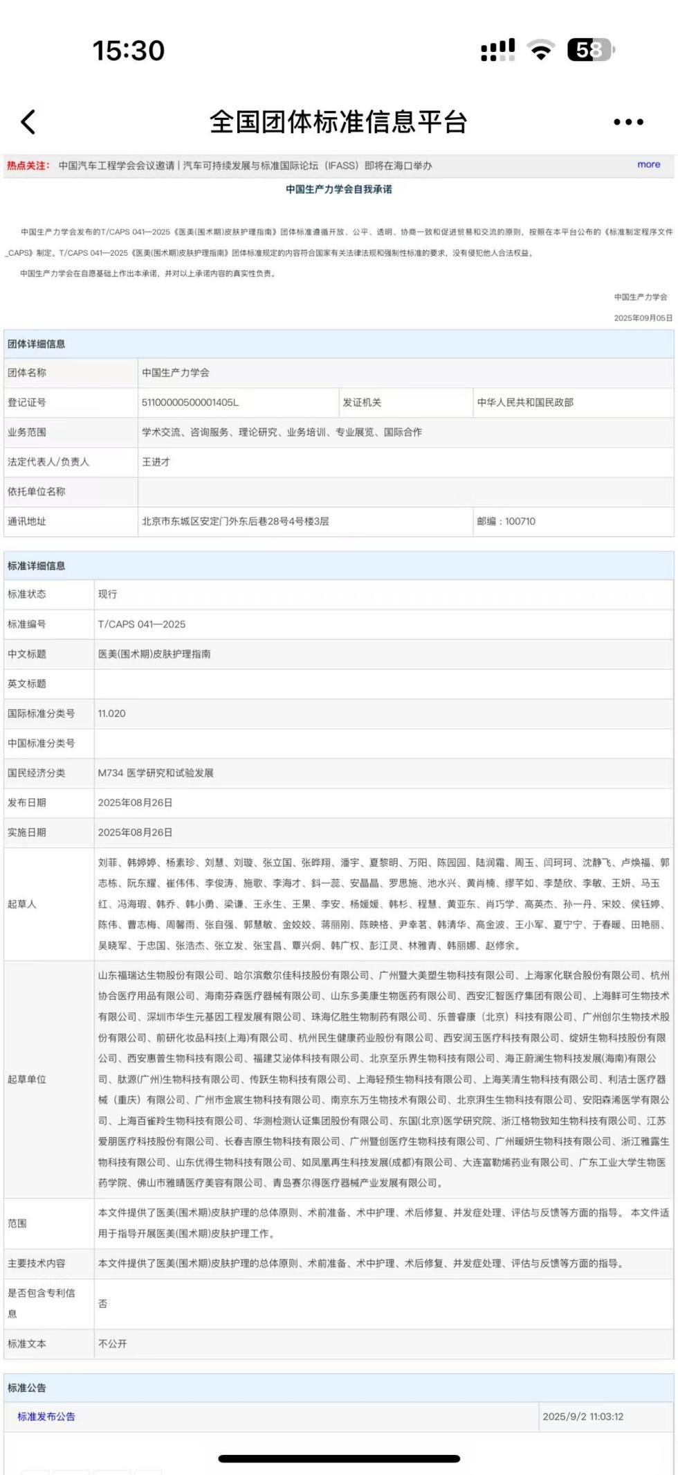 2025년 8월 26일, 중국생산성학회(China Productivity Society)와 다음을 포함하여 업계의 여러 주요 기업이 공동으로 초안을 작성한 그룹 표준 "의료 미용(수술 전후)의 피부 관리 지침"(표준 번호: T/CAPS 041 - 2025)청도 Saildar 의료기기산업발전유한회사가 공식적으로 출시되어 구현되었습니다. 이번 행사는 우리나라 의료 미용 산업의 표준화에서 중요한 진전을 이루었으며 칭다오 세일다 의료기기 산업 발전 유한회사의 발전에 강력한 추진력을 불어넣었습니다.